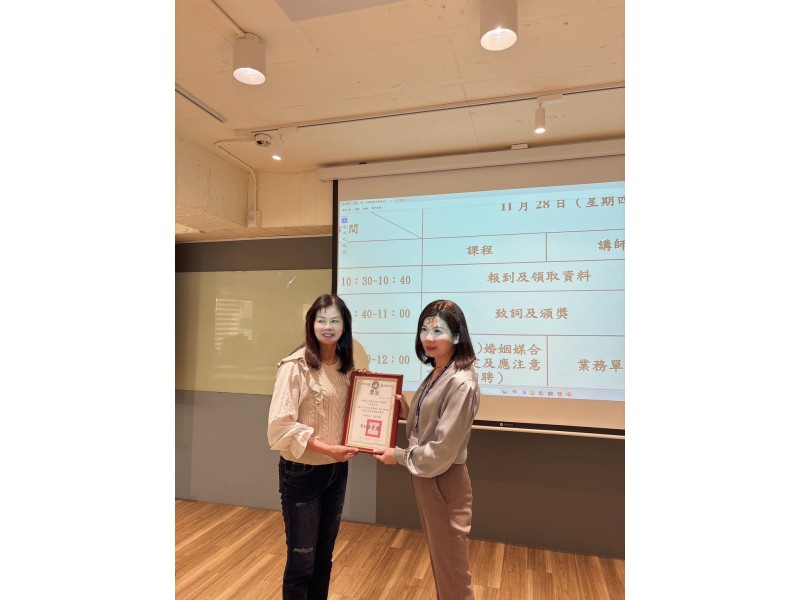 113年跨國(境)婚姻媒合團體工作人員研習座談~本會獲頒發服務品質品鑑優等獎